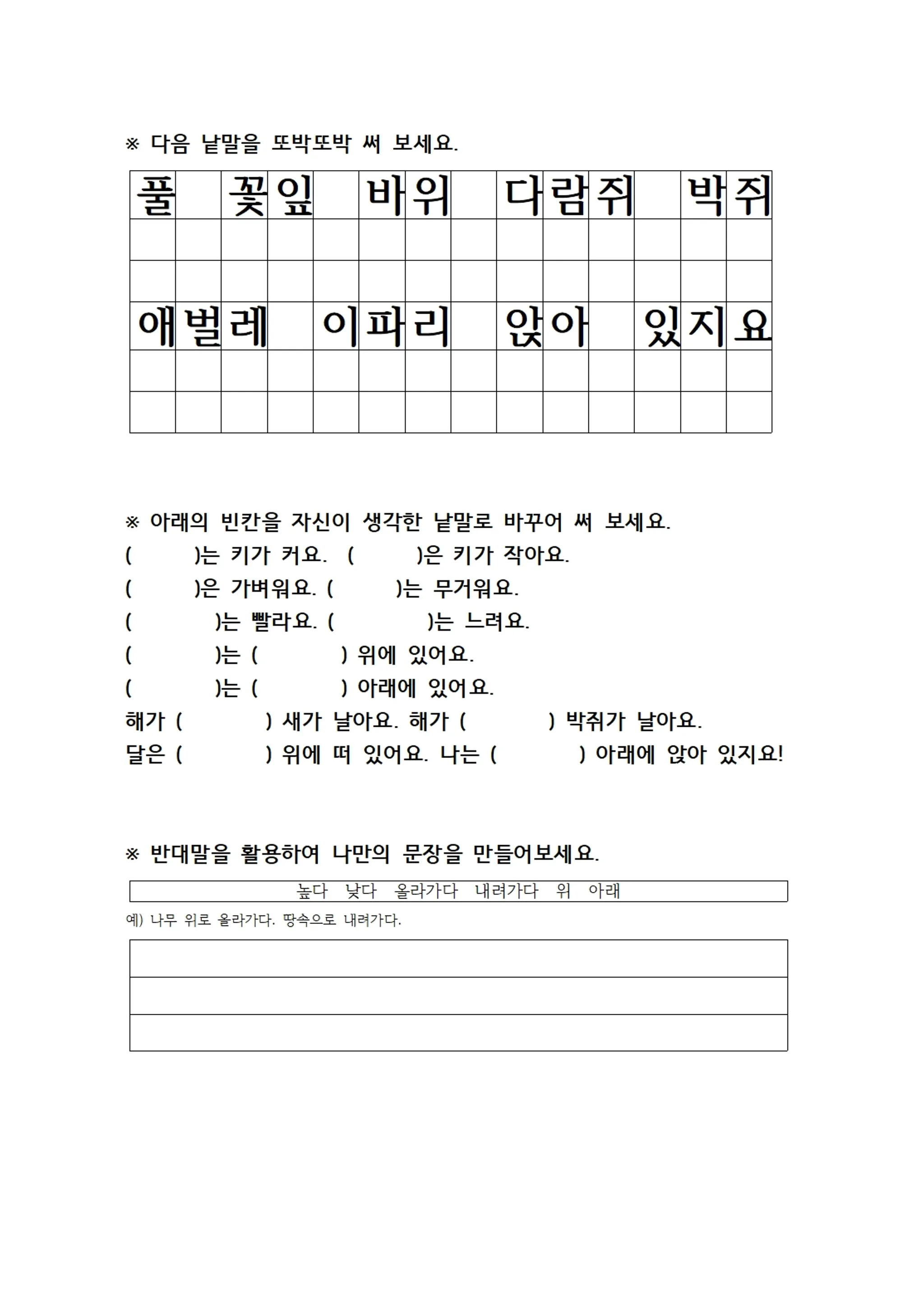 반대말의 의미 파악하고 문장 만들기 (장현경 선생님)