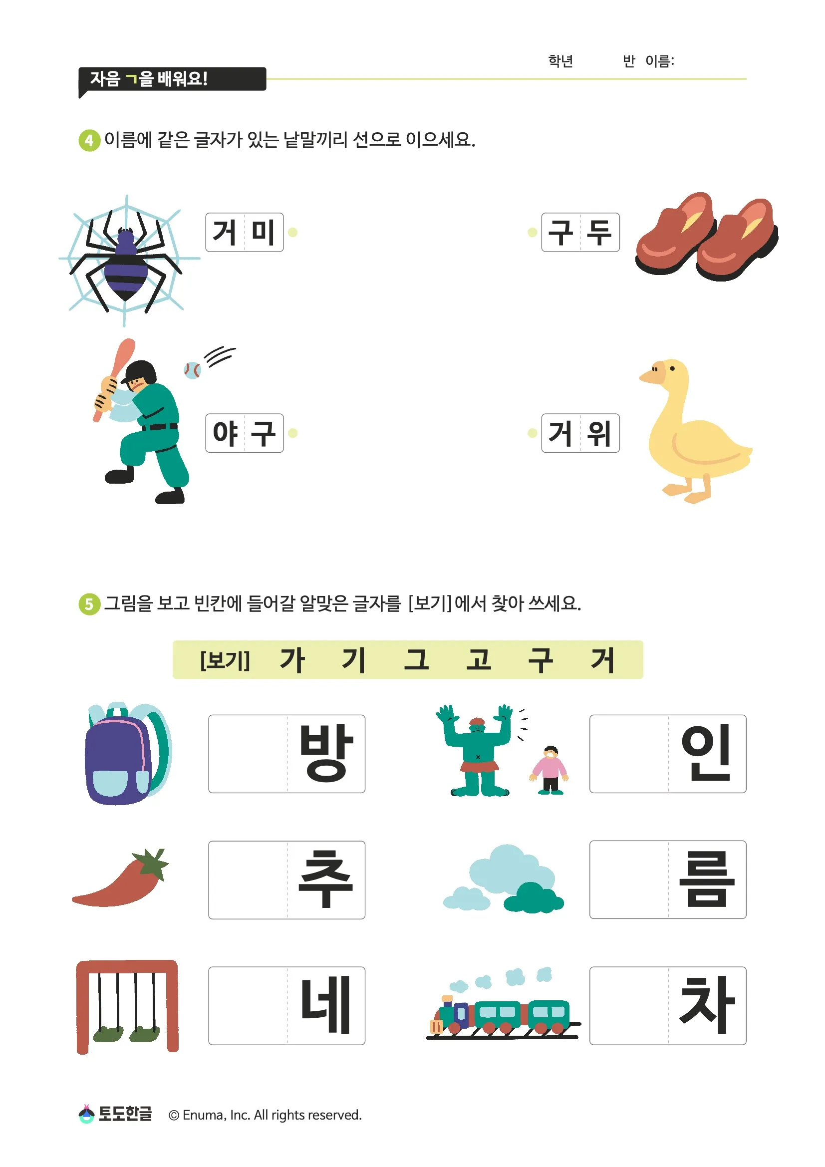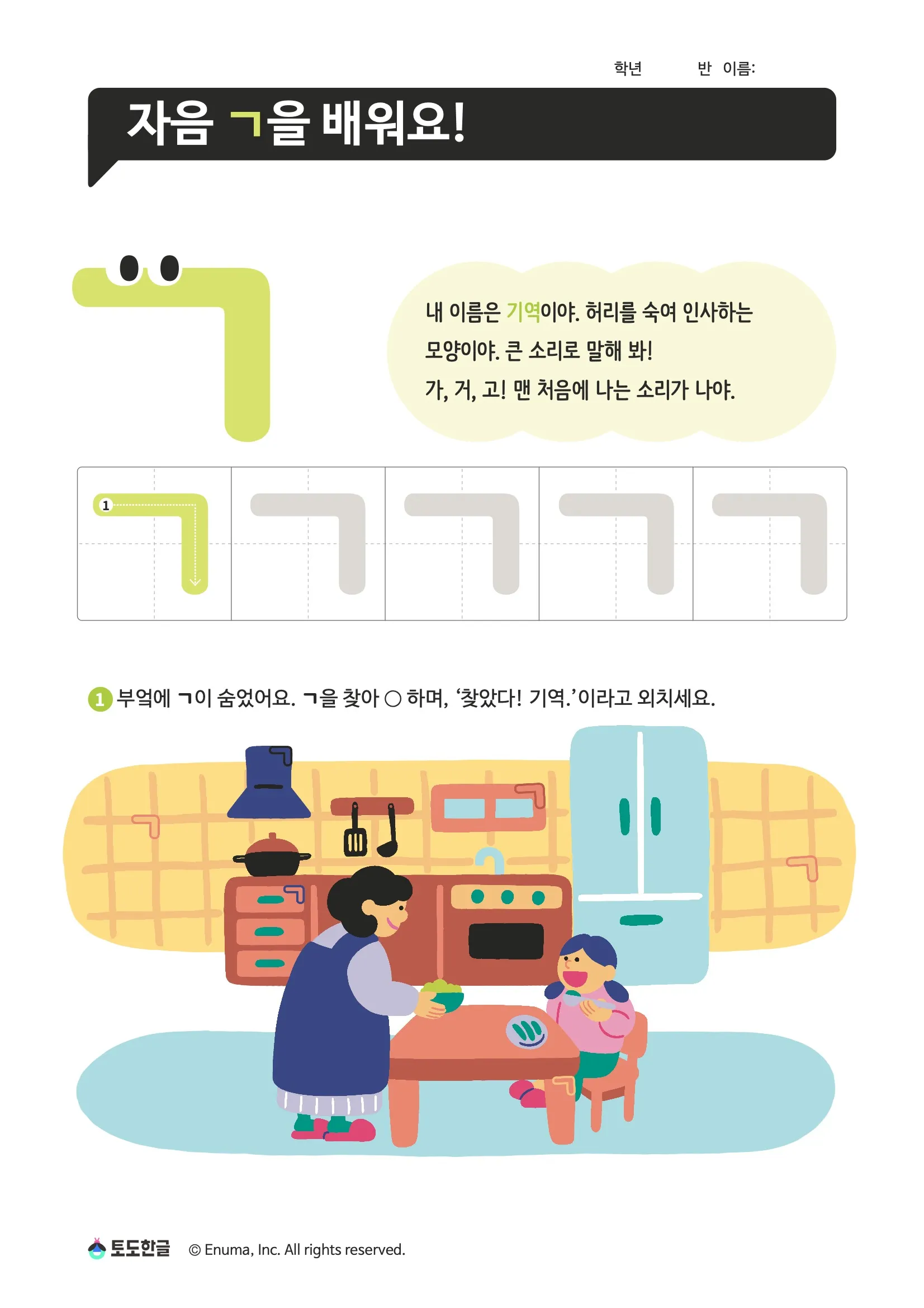 1-06. 자음 ㄱ을 배워요 예시 (1)