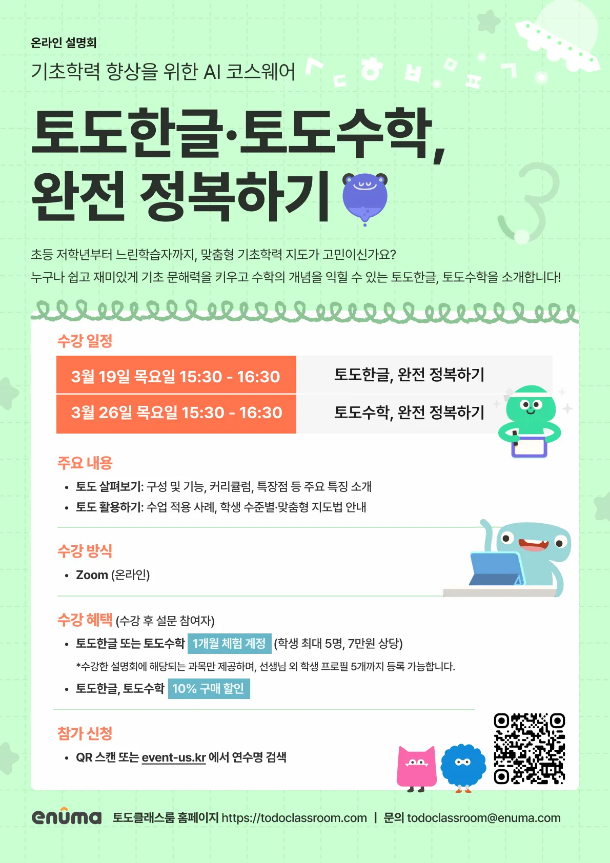 토도한글 · 토도수학 2026년 온라인 설명회 안내