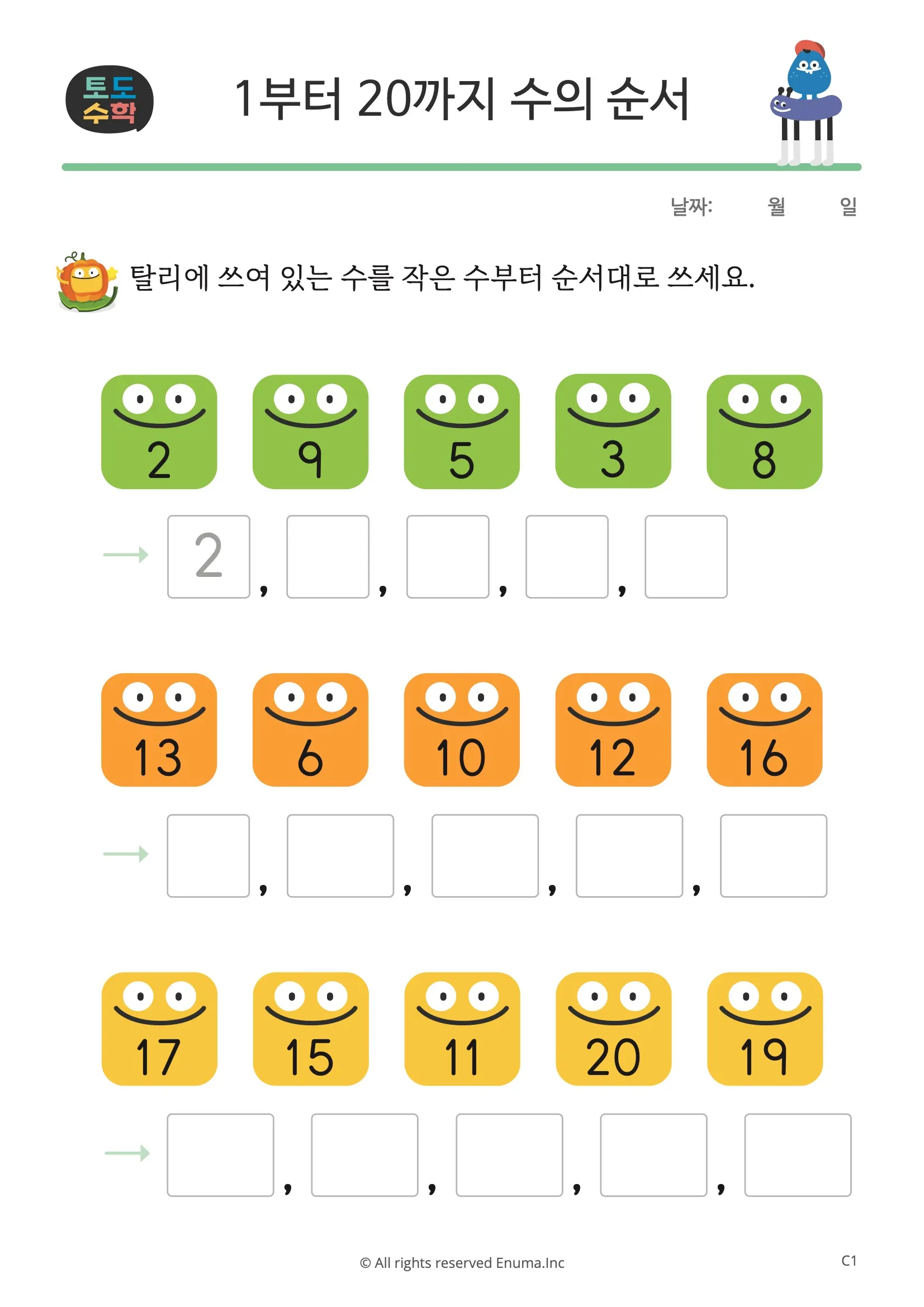 C1 | 1부터 20까지 수의 순서를 알 수 있습니다. |