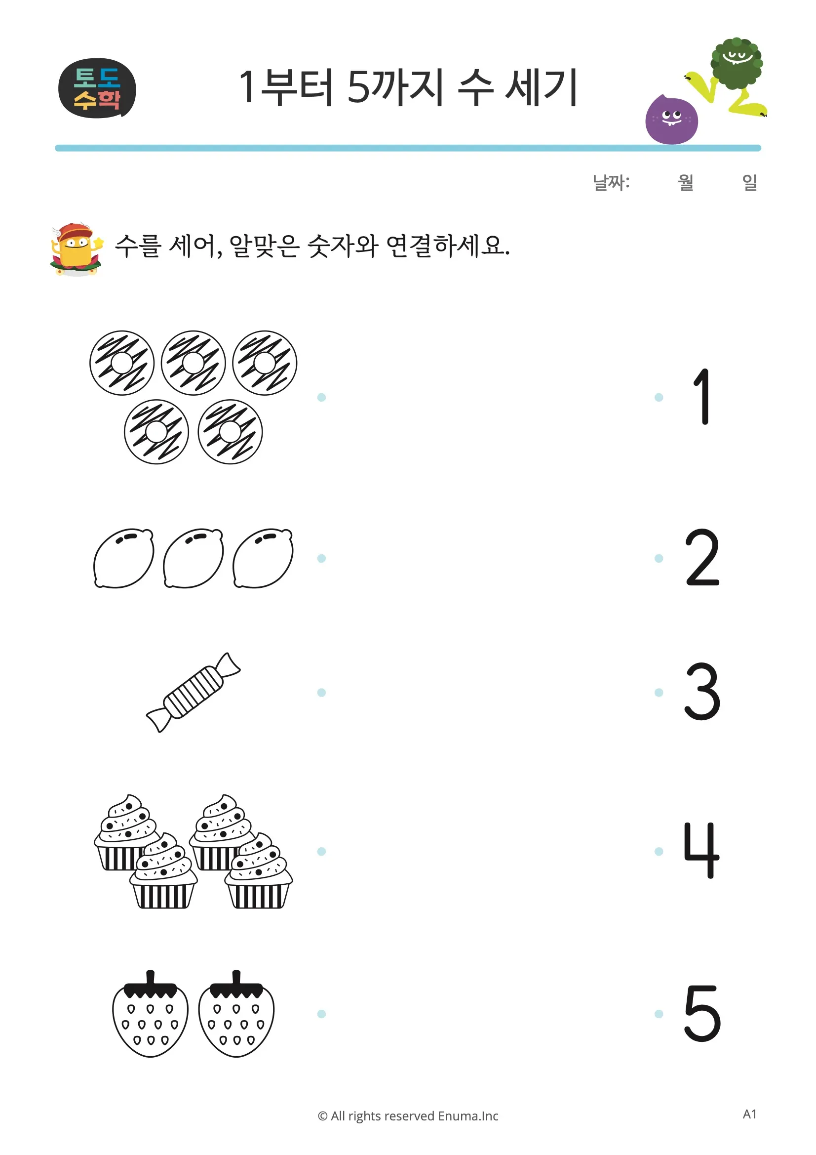 A1 | 1부터 5까지 물건의 개수를 셀 수 있습니다. |