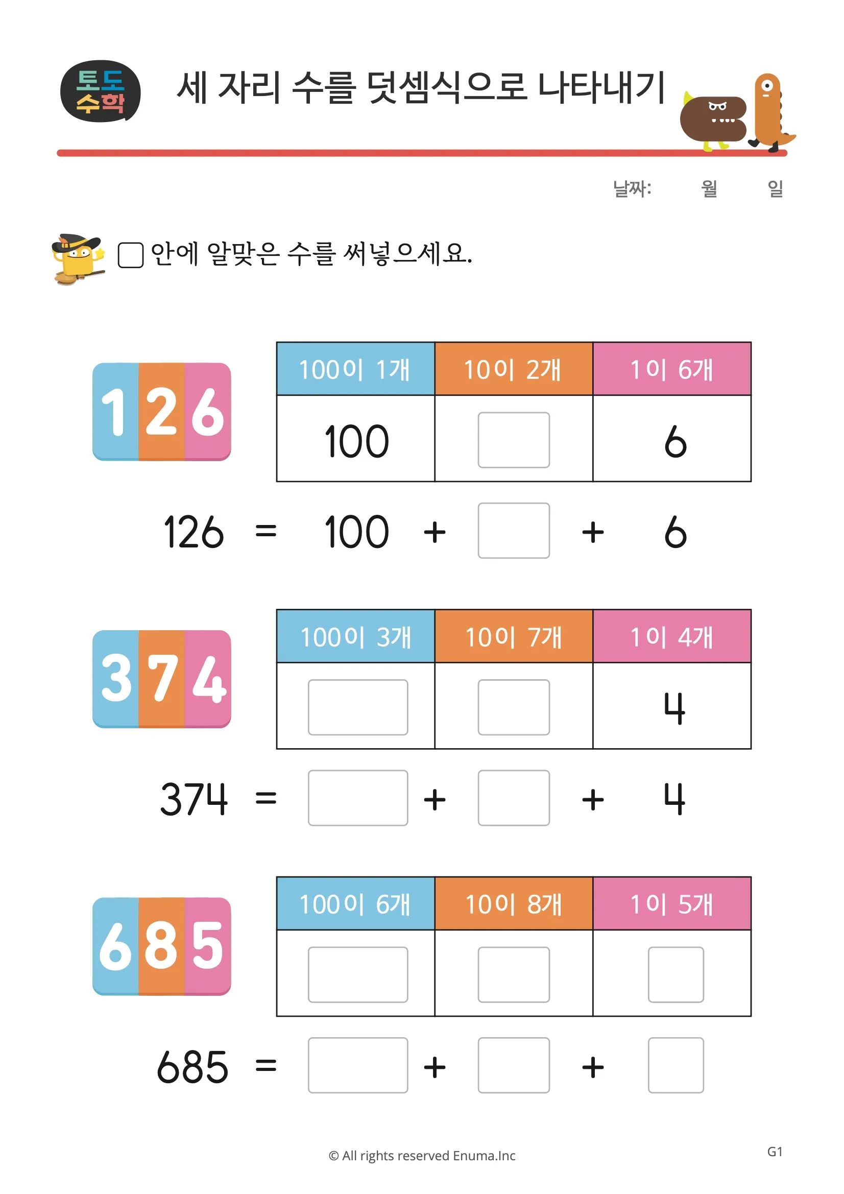 출력하여 사용 가능한 토도수학 워크시트입니다.