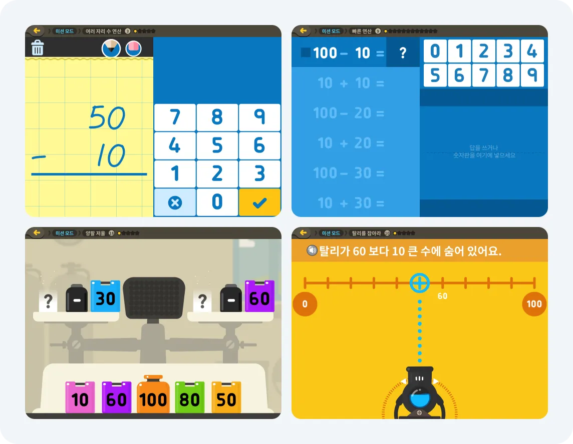 E8 | 두 자리 수에서 몇 십을 뺄 수 있습니다. |