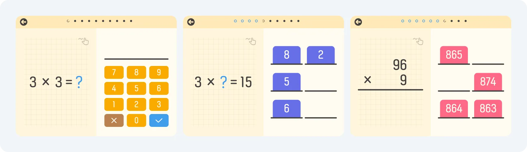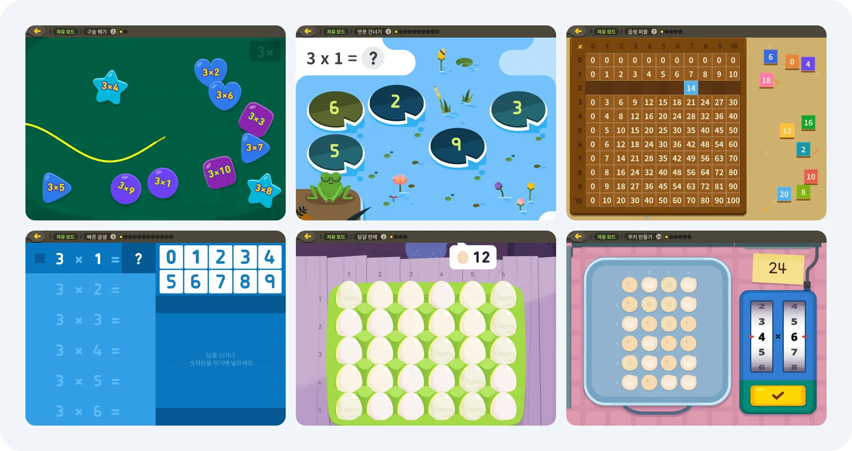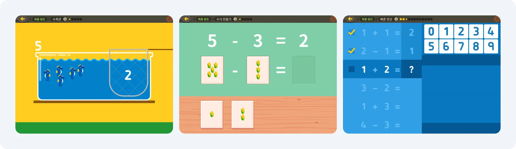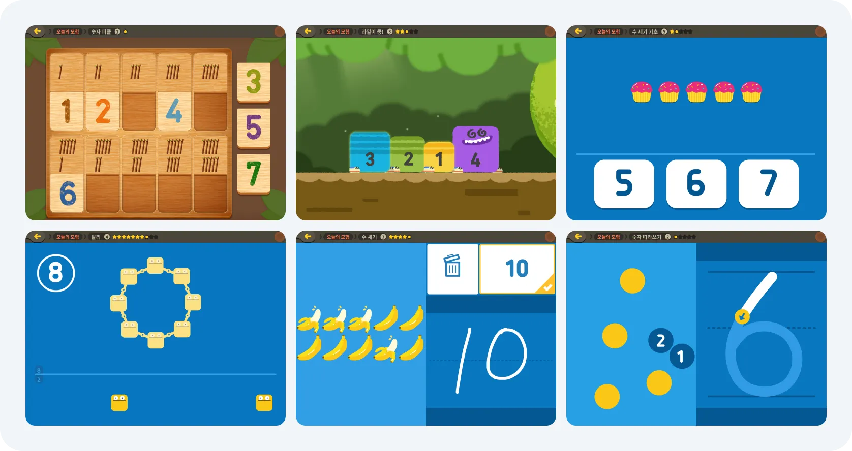 시각, 청각, 촉각 등 감각적인 즐거움을 주는 게임 기반 액티비티는 학습자들이 즐겁게 조작하는 사이 자연스럽게 수학의 주요 개념을 학습하도록 돕습니다.