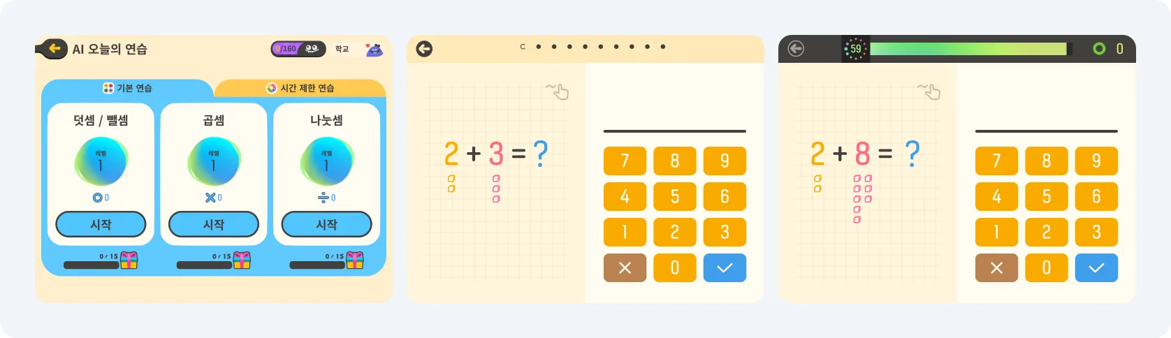 AI 연습: AI가 학습자의 수준에 맞게 내는 연산 문제를 풀며 실력을 향상시킬 수 있습니다.
