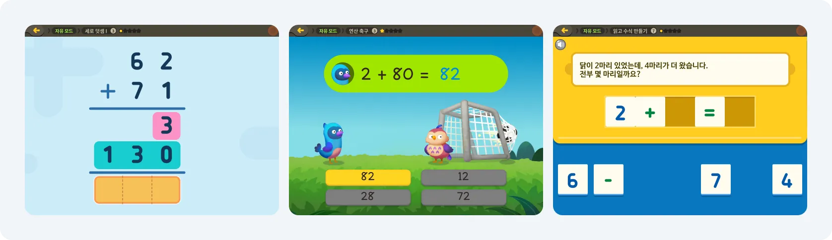 세로 덧셈 I / 연산 축구 / 읽고 수식 만들기