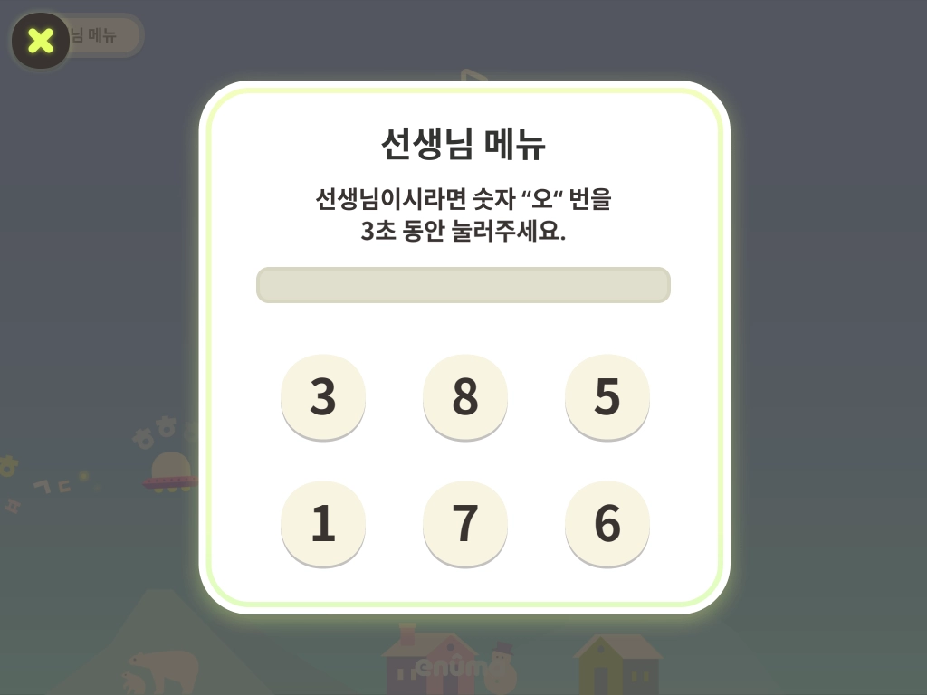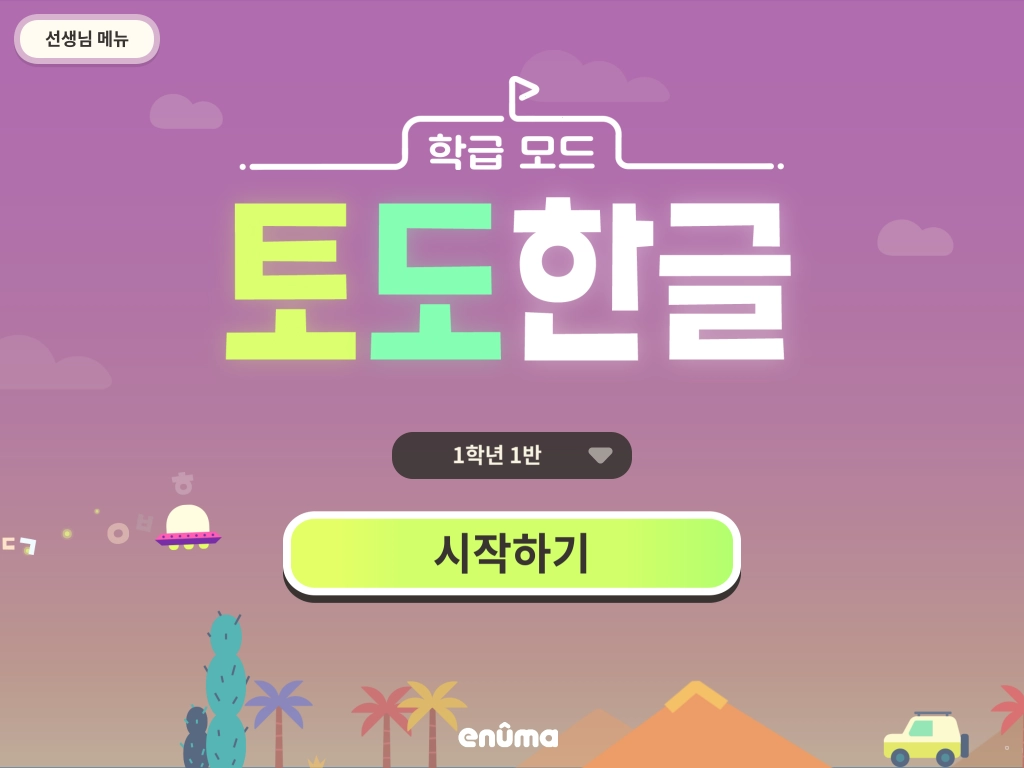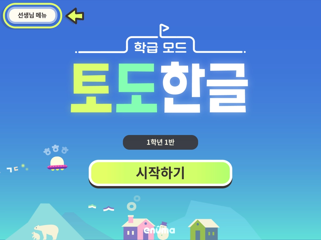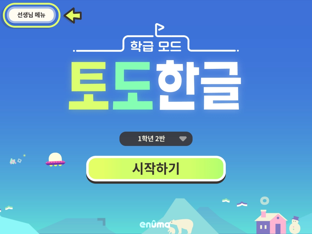 1. 타이틀 화면 좌측 상단의 [선생님 메뉴]를 누릅니다.