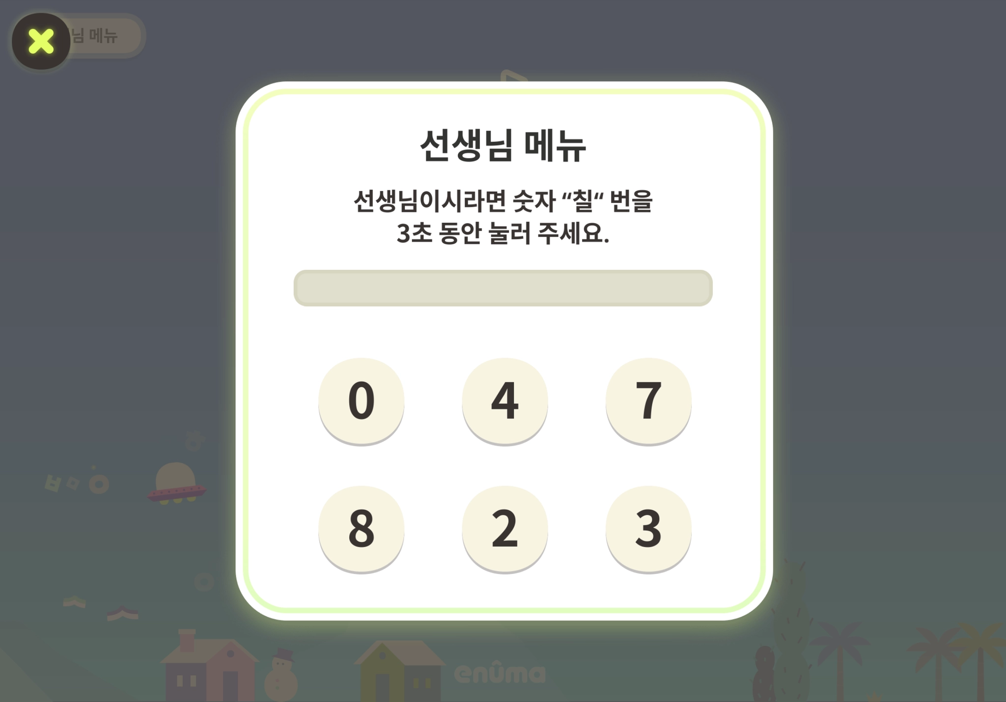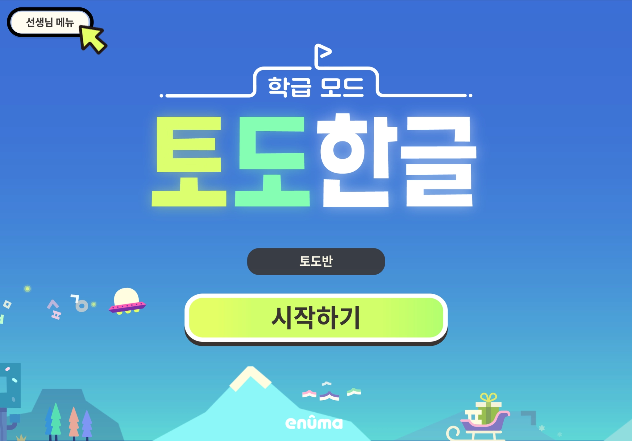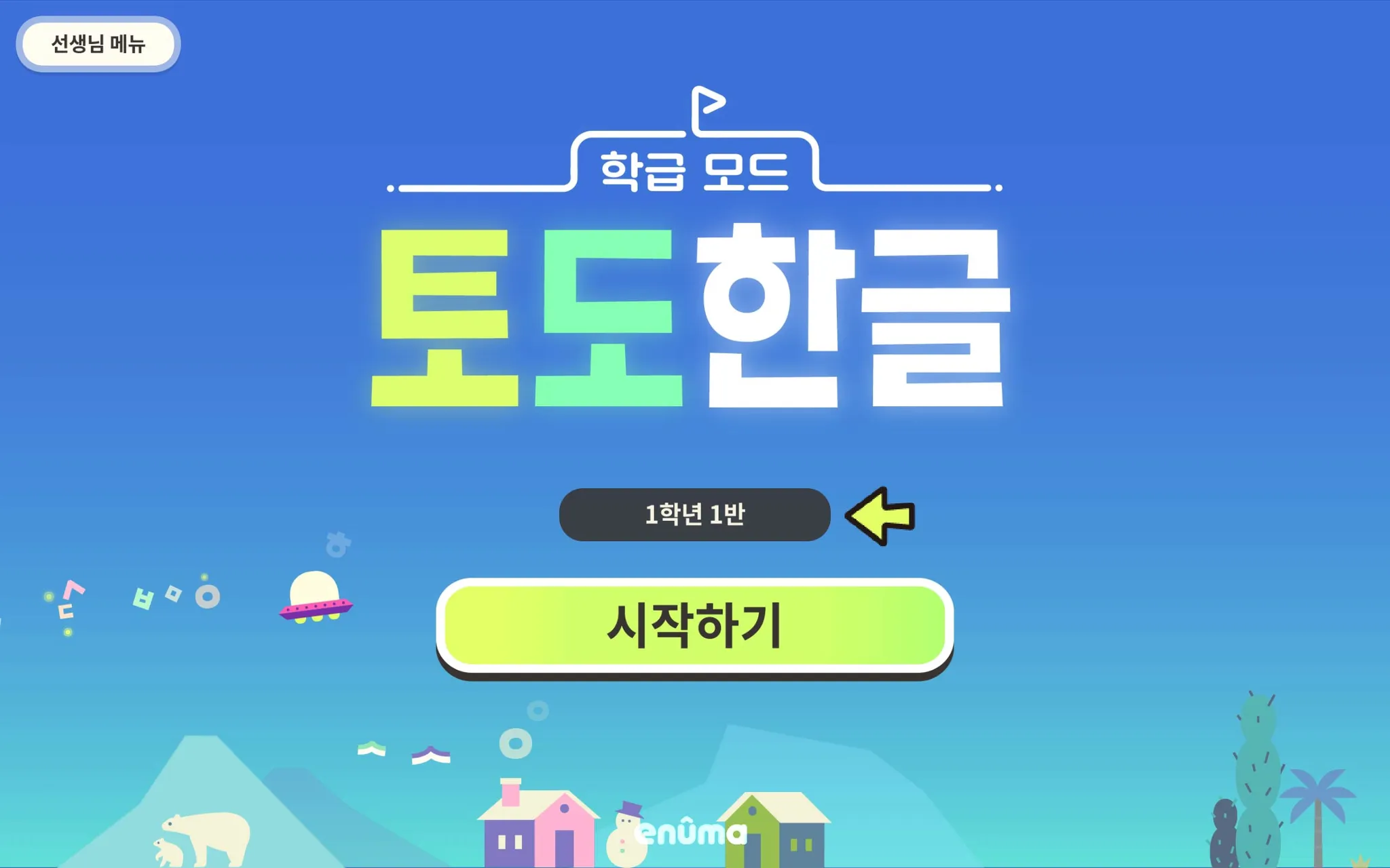 1. 타이틀 화면 좌측 상단의 [선생님 메뉴]를 누릅니다.