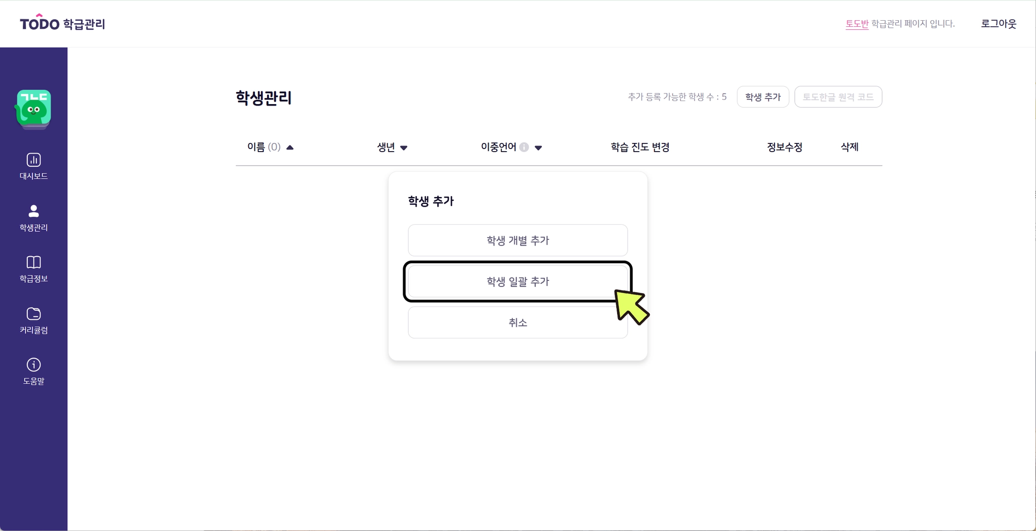 3. [학생 일괄 추가]를 클릭합니다.