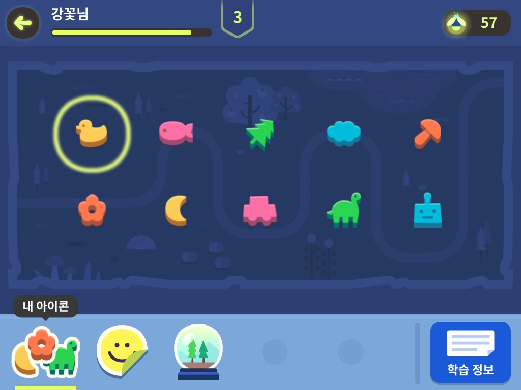 학생 목록, 모험 지도 등에서 보이는 아이콘은 최초 학생 등록 과정에서 랜덤으로 지정됩니다. 이 아이콘은 각 학생이 [내 공간]에서 자신이 원하는 것으로 직접 변경할 수 있습니다.